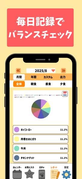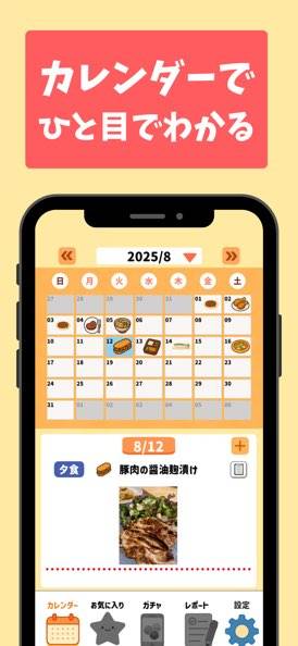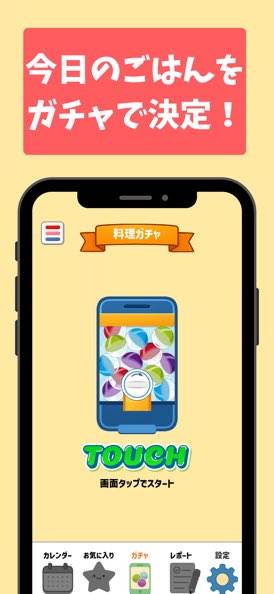 また、献立をガチャで決めるユニークな機能も搭載。ポップなデザインも相まって、楽しい雰囲気に仕上がっています。