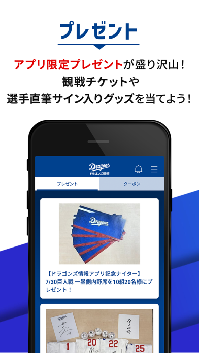 竜党必見の公式アプリ 選手の素顔に迫る動画、サイン入りプレゼントもあり