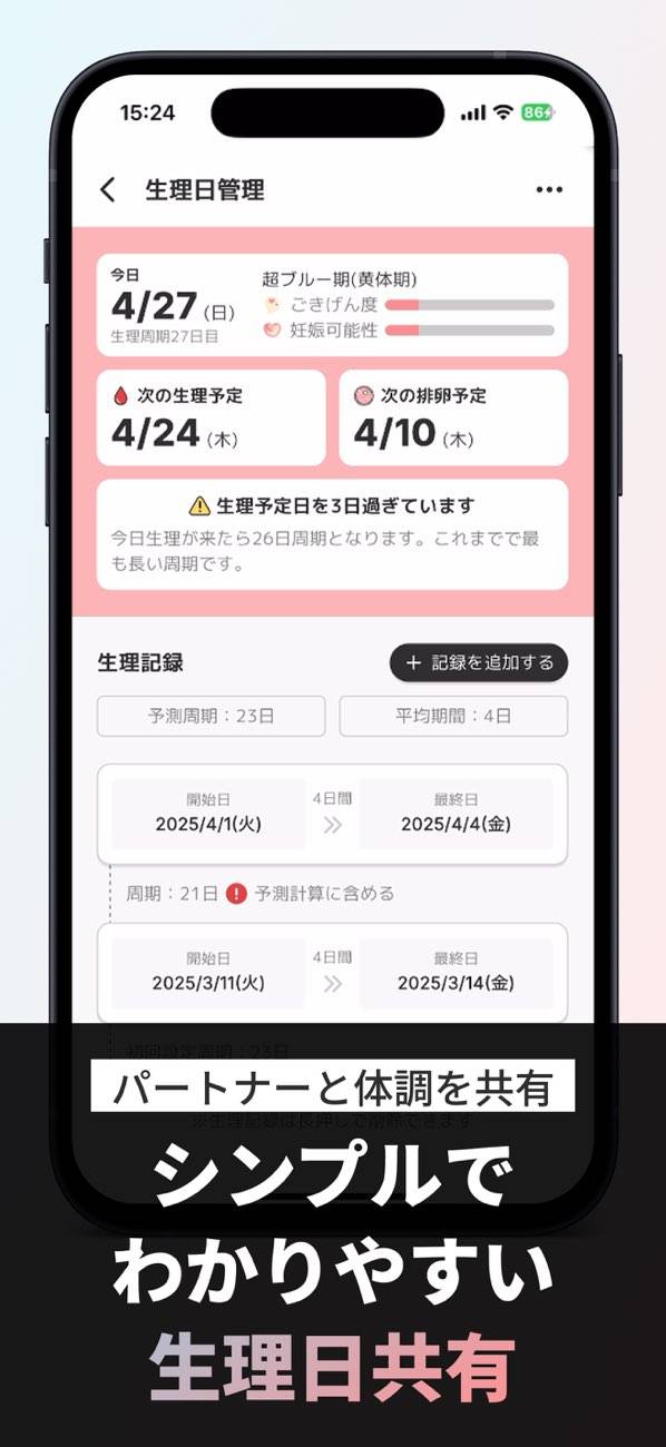 チャット、カレンダー共有、TODOリストなどを搭載。「予定はカレンダーアプリ、やることはToDoアプリ」のように複数アプリを使う必要がありません。生理予定や記念日の通知、位置情報共有などなど、さまざまな機能があり、2人の生活を徹底的にサポートしてくれます。
