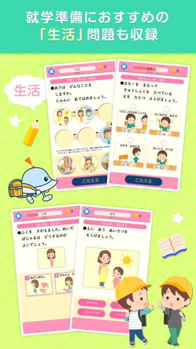 - 未就学児向けの「生活」分野も収録。あいさつやマナーも楽しく学習