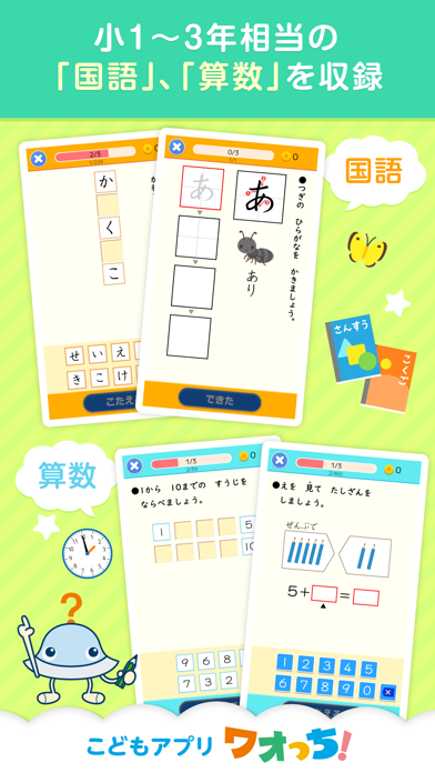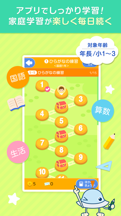 かつて紙のドリルが苦手だった親御さんは一見の価値あり。未就学児から小学校1年生、2年生が対象の学習アプリです。ゲーム的な雰囲気となっており、勉強への抵抗感が和らぐ仕組み。