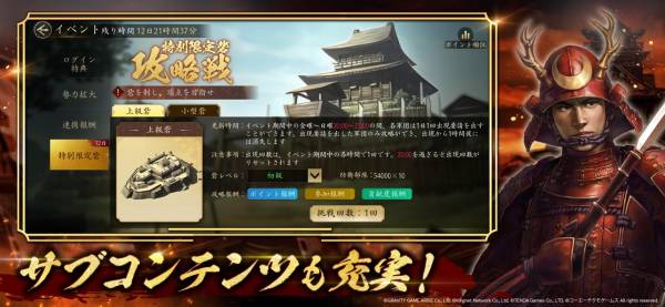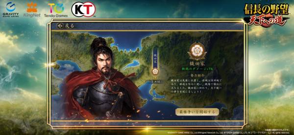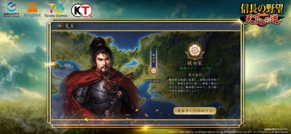 『信長の野望・天道』の正式ライセンスを受け開発されたMMO歴史戦略シミュレーションゲームです。毛利家、尼子家、長宗我部家、武田家、上杉家、そして織田家のいずれかの勢力の領主となり、ほかのプレイヤーと強力しながら勢力拡大を目指します。