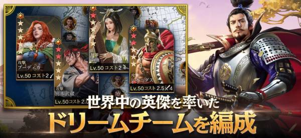 - 織田信長やクレオパトラなど世界の英傑が仲間に。夢の部隊編成が実現