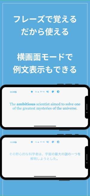 - 縦画面では英単語、横画面では文章表現。2分野を学べる一石二鳥設計