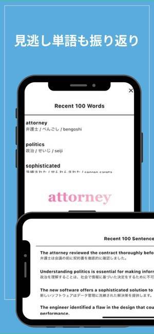 ただ画面を眺めながら、英語の意味を確認していくだけ。余分な操作も、余計な情報もないシンプル設計の中、集中して勉強に臨めます。
