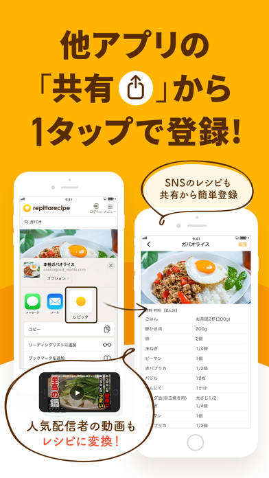 - WebやSNS、レシピ本などすべてのレシピを無制限で一元管理