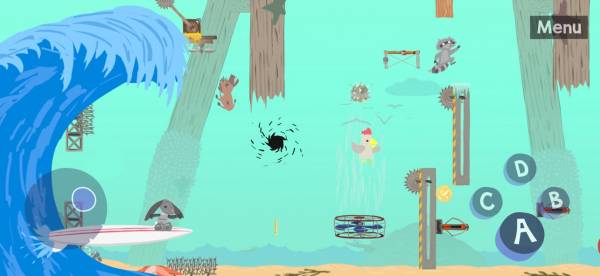 ギミックの設置が終わったら、ゴールを目指しみんなで競争します。崖に落ちたり、トラップに引っかかったりするとミス。見事ゴールすればポイントが入ります。ポイントの詳細は後述。たまに誰もゴールできない無理ゲーすぎるコースができるのもご愛嬌。