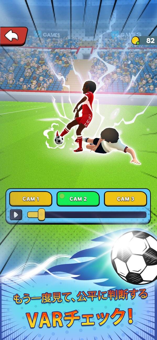 アクシデントが起こったら公平にジャッジ。ファウルに該当する選手は誰か、警告で済ませるか、カードを出すか、フリーキックはどちらのチームに与えるか。そこまで正確に判断しなければなりません。リプレイカメラを用い、何度も見直すというゲームならではの要素も。