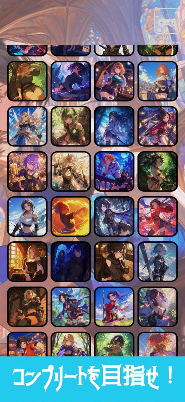 ファンタジー世界の少女をモチーフにしたパズルゲームです。凛とした佇まいに、どこか儚さを秘めた少女たちのイラストがパズルとして登場。