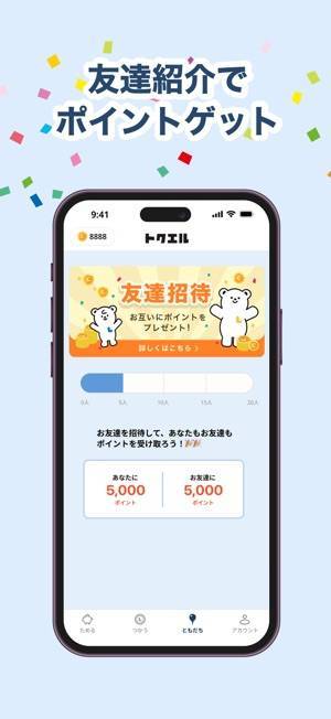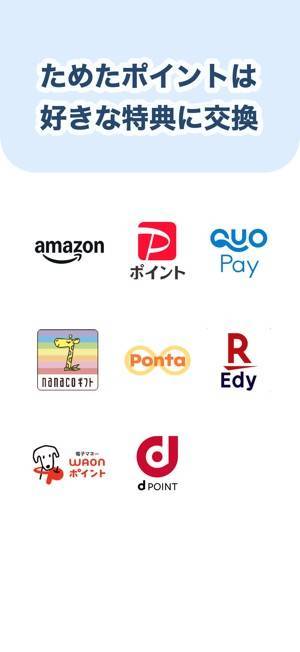 さまざまなポイント獲得手段が用意されているタイプのポイ活アプリです。1,000歩ごとの歩数でポイントが貯まるため、通勤・通学や買い物がそのままポイ活に。