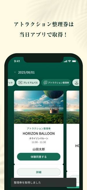 チケットの事前購入・保管もアプリ内で完結。また、「整理券対象アトラクションの」整理券の取得には本アプリが必須です。