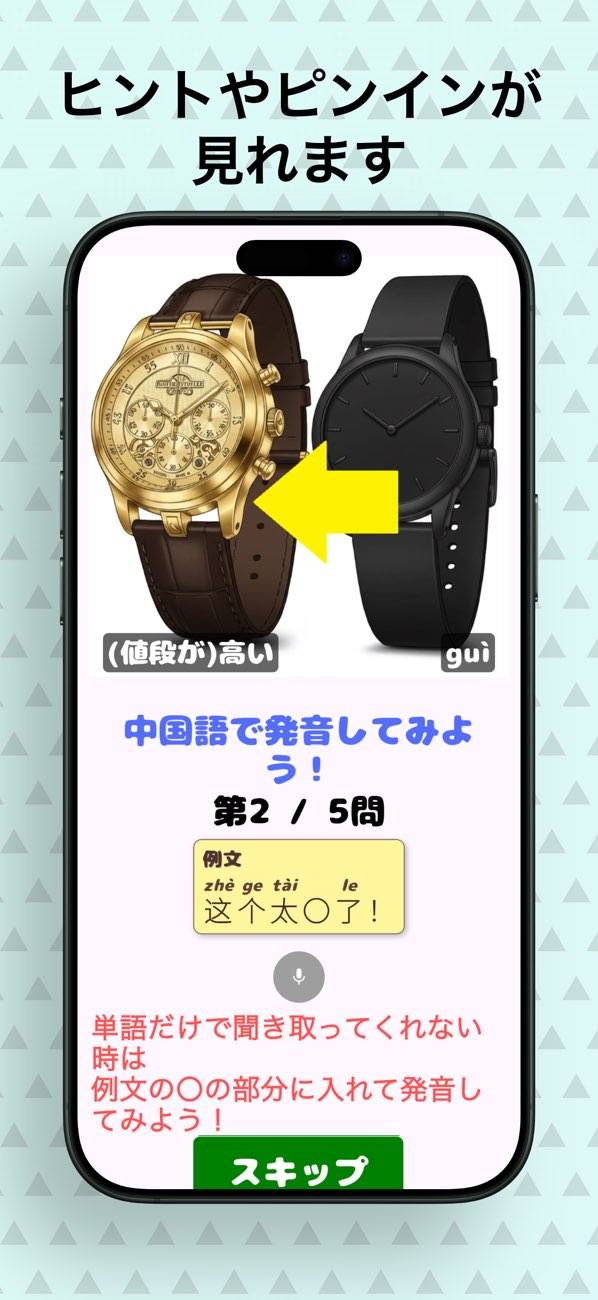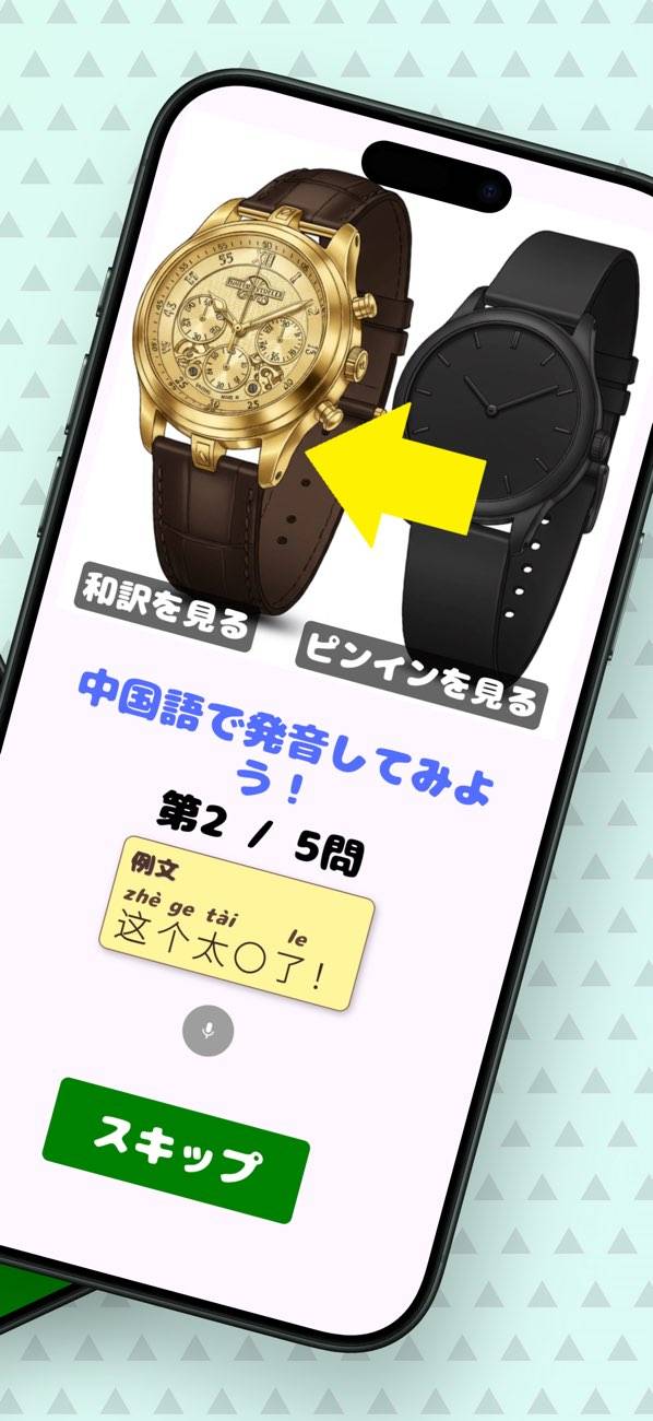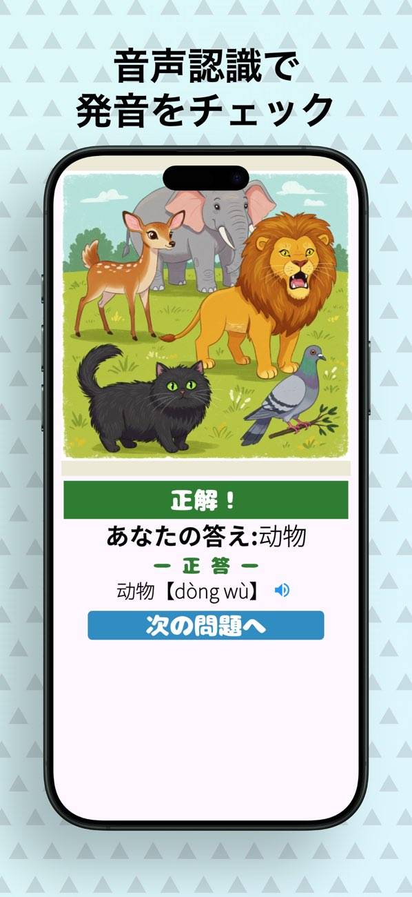 一方で判定は意外とシビア。中国語特有の四声(声調)まで含め、正確に発声する必要があります。だからこそ効果的。中国語マスターの第一歩にどうぞ。