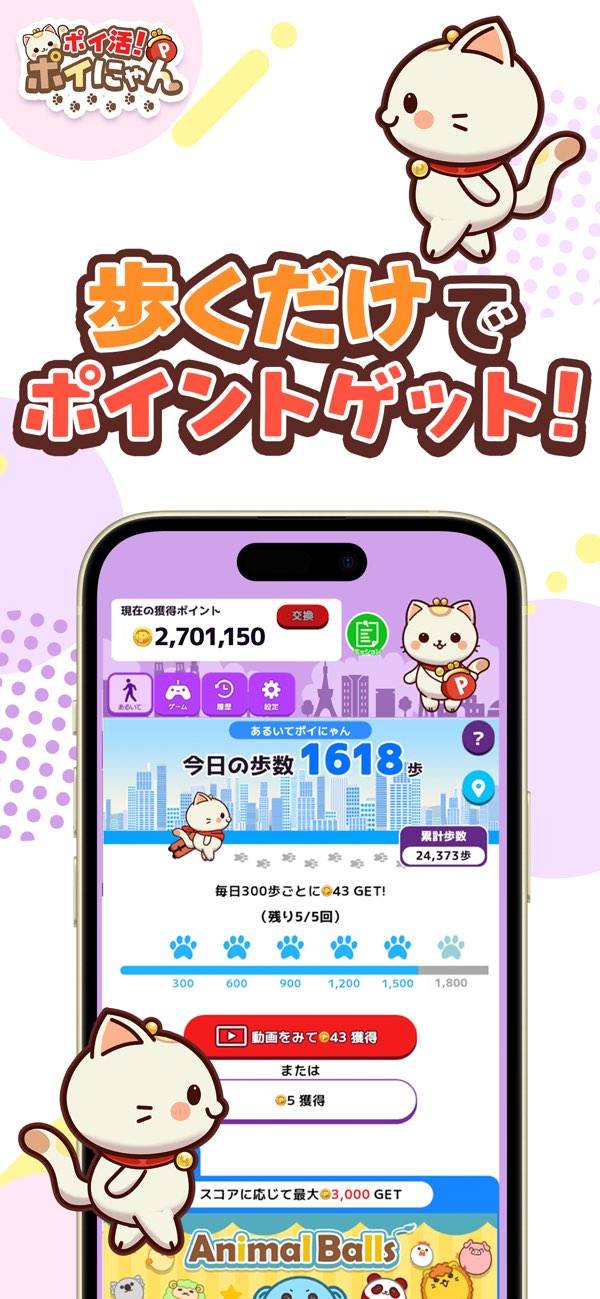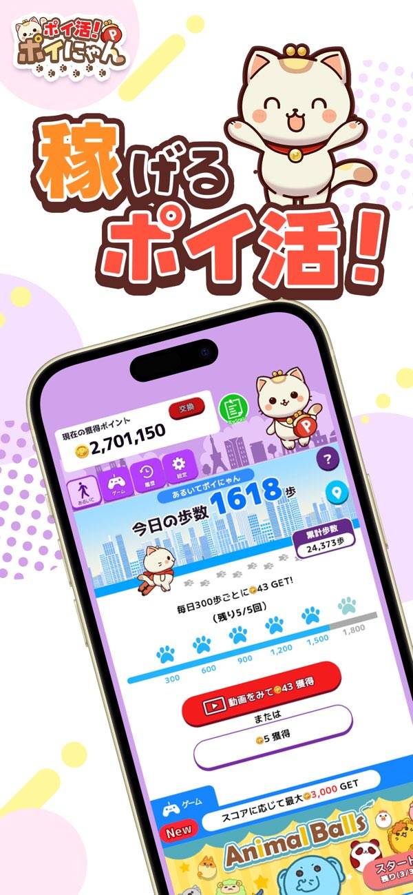 ポイ活!ポイにゃん-歩くだけやゲームでお小遣いを稼げる!