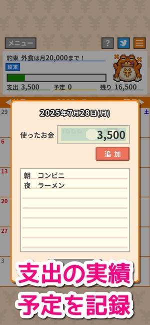 浪費改善は手軽に、無理なく。外食やゲーム課金など、つい使いすぎてしまう出費の改善を図るアプリです。