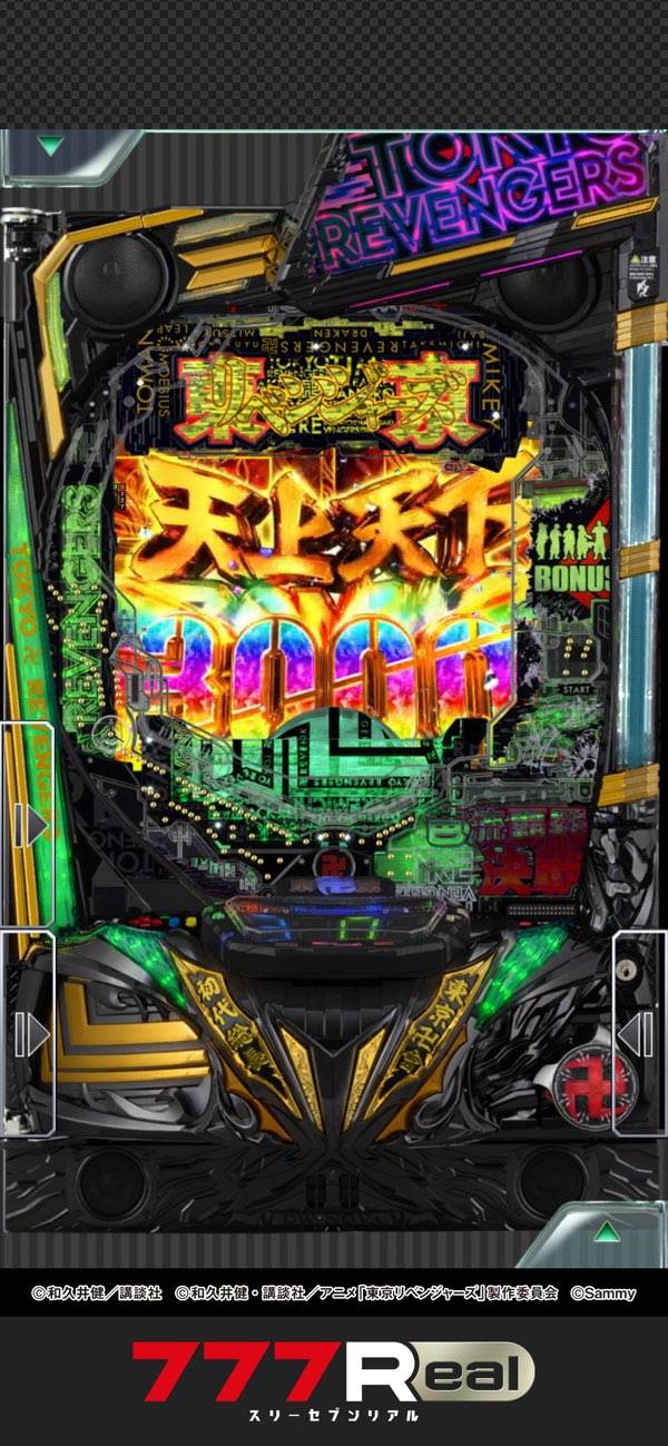 アニメ1期+漫画が主軸となる演出の数々を堪能できます。マイキーの黒い衝動予告やタケミチのタイムリープ予告、ロゴ落下演出など、実機と遜色なし。BGMは課金が必要ですが、打感や演出といった面の不足感は感じられません。