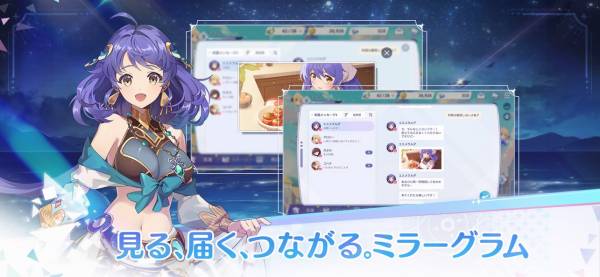 キャラクター描写に異世界のSNS「ミラーグラム」が活躍します。キャラクターと1対1のメッセージ交換を進める中で、専用のイベントが発生することも。さらにイベント中の1枚絵がミラーグラムに投稿され、ほかのキャラクターから「いいね」やメッセージが付くなど、SNSとしての側面が存分に活かされています。