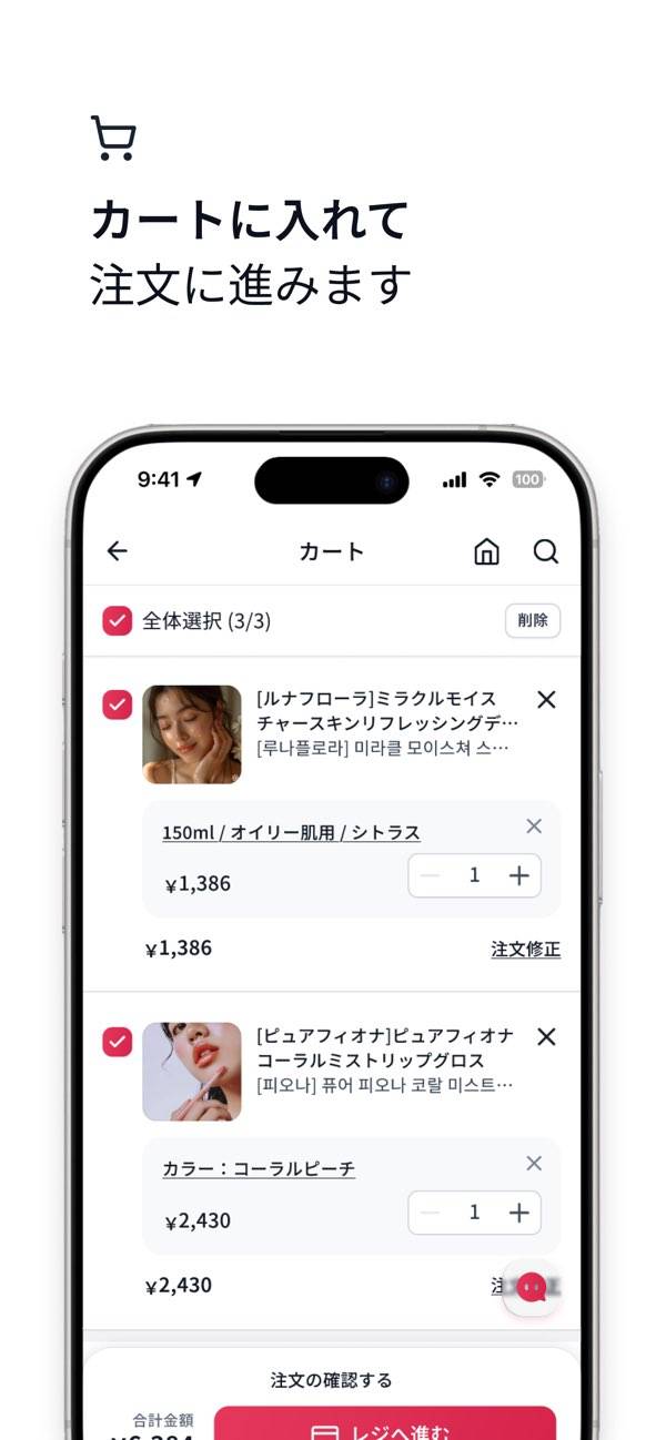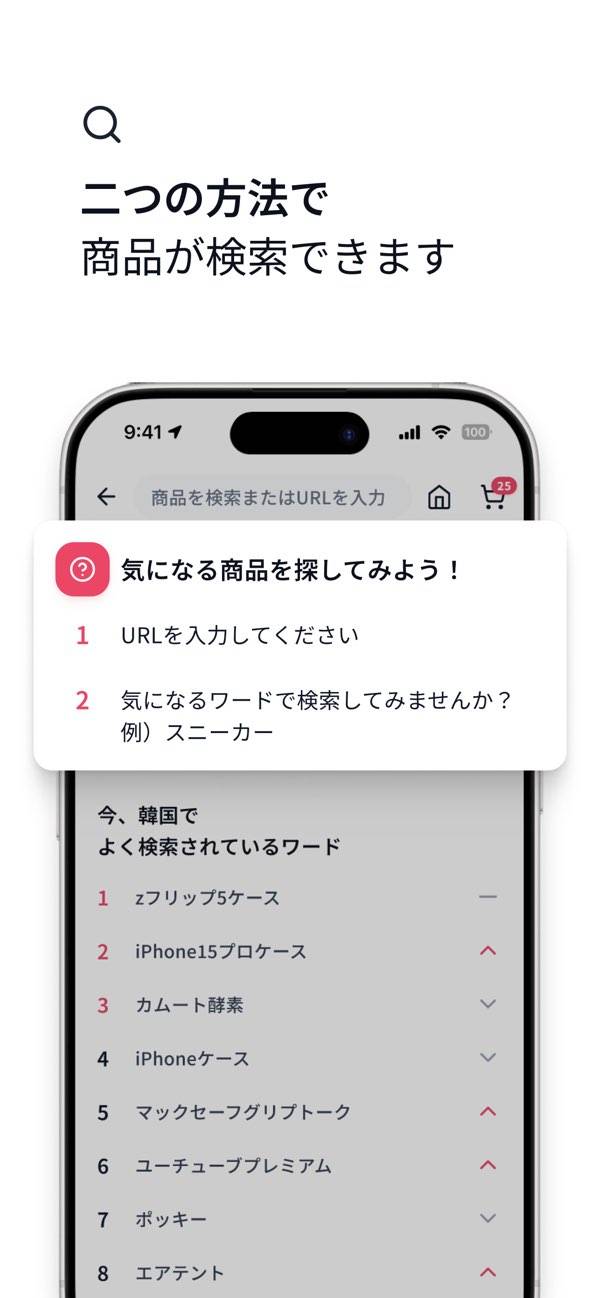 欲しい商品はアプリ内でキーワード検索するか、韓国サイトのURLを貼って注文。なかなか手に入りづらい現地の商品も、このアプリを使えば手元に届きます!