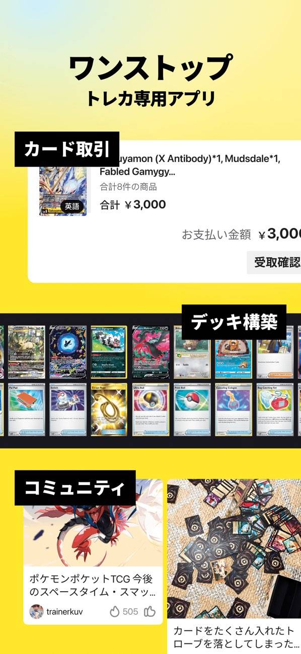 トレーディングカードの最新情報を集約したトレカのフリマアプリです。カード相場の最安値を自動検出して、買い集めを効率化。大会で活躍したデッキリストを毎日更新しており、AIによる勝率分析やメタ予測も可能です。カード探しやデッキ構築をもっとスムーズにしたい人にぴったりです!