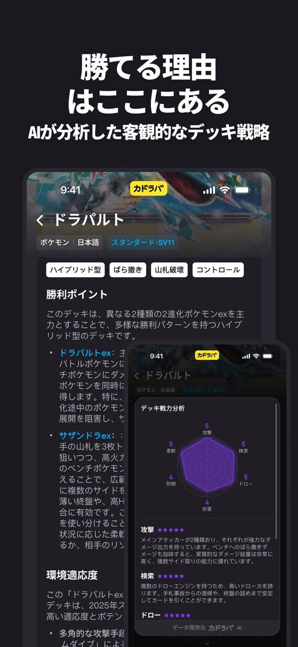 - AIがデッキを解析し、勝ち筋を見つけるデータ分析が優秀