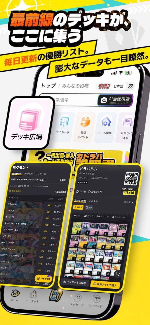 トレーディングカードの最新情報を集約したトレカのフリマアプリです。カード相場の最安値を自動検出して、買い集めを効率化。大会で活躍したデッキリストを毎日更新しており、AIによる勝率分析やメタ予測も可能です。カード探しやデッキ構築をもっとスムーズにしたい人にぴったりです!