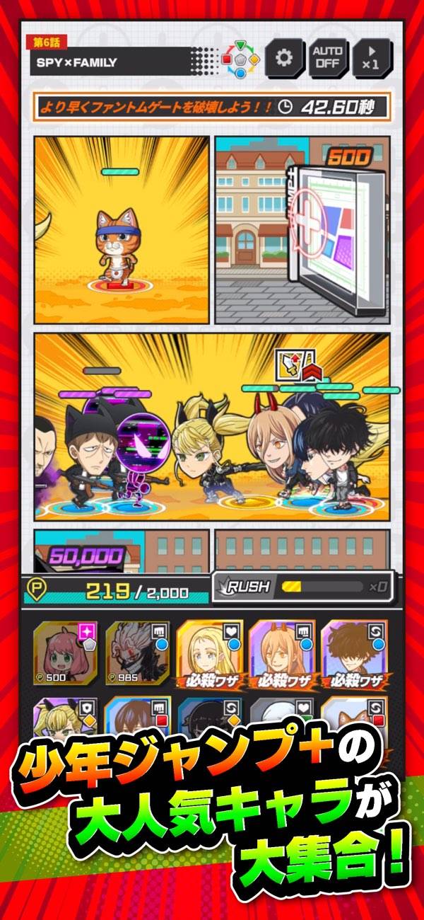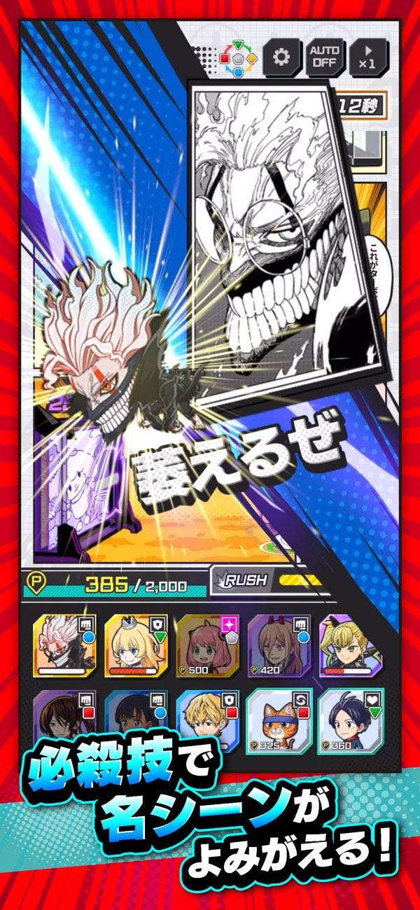 - 漫画キャラを召喚して必殺技を発動。爽快感が味わえる