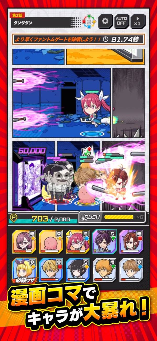 漫画コマが魅力 原作を再現したキャラの必殺技で、迫りくる敵を迎え撃て