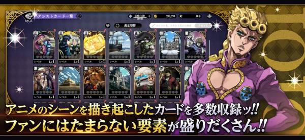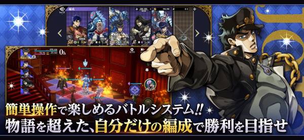 『ジョジョの奇妙な冒険』シリーズがSLGになって登場! シリーズのキャラクターたちを自由に編成し、バトルを通しながらアニメ版の物語を追体験できます。