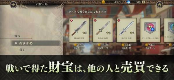 - 集めた財宝を売買し、駆け引きを広げられる取引要素もあり