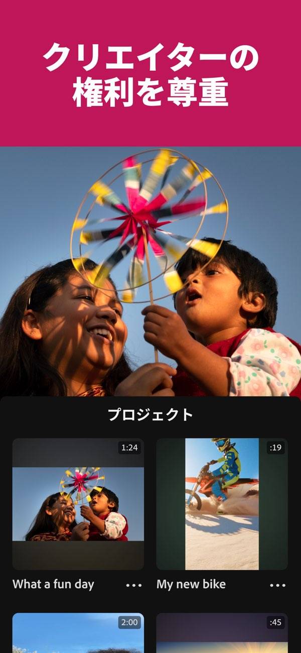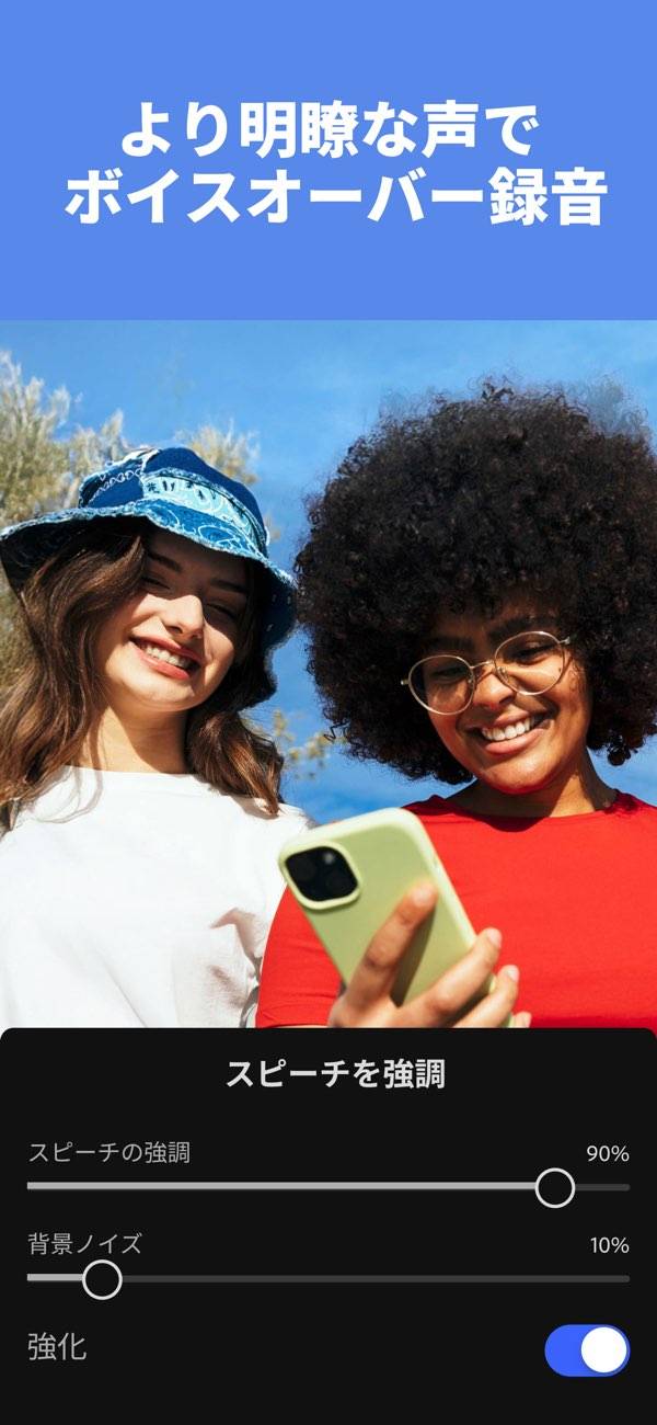 気軽な作業はもちろん、細部までこだわれる動画編集アプリです。フレーム単位でのカットや背景の除去、音声の自動ノイズ除去など、多彩な編集機能を搭載。広告や透かしのない環境で、仕事にも趣味にも役立つ動画を効率的に仕上げられるのが魅力です。