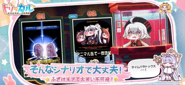ちょっと戦いに疲れたら、教団本部でインテリアを楽しむのもおすすめです。家具やフィギュアを自由に配置でき、自分だけの空間をクリエイトできます。またメイドの配置や装飾品の組み合わせ次第で、キャラたちの行動にも変化が。自分で作った“ほわほわ教団”に引きこもって、まったり過ごす日常もこのゲームの魅力の1つです。
