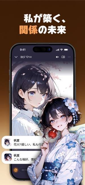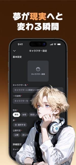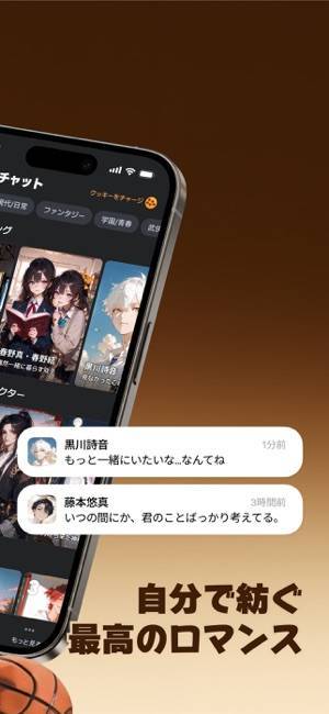 スマホ内の画像を使えば、自分好みの美少女・美男子キャラを簡単に作成可能。キャラには自分で名前をつけられ、声や性格のタイプも選べます。たとえば学園モノの雰囲気で先輩後輩のやりとりを楽しんだり、おとぎ話の姫様と冒険の相談をしたりと、妄想の世界に入り込んで一緒におしゃべりを楽しめますよ。