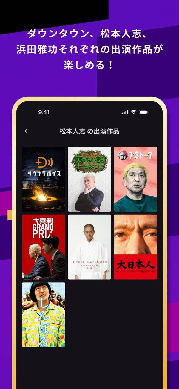 松本人志と浜田雅功の出演作をいつでも観られる動画アプリ。過去の人気番組はもちろん、松本人志が手がける完全新作のお笑い作品や番組も続々追加されています。休日やちょっとした空き時間に、スマホで気軽にお笑いを楽しめますよ。