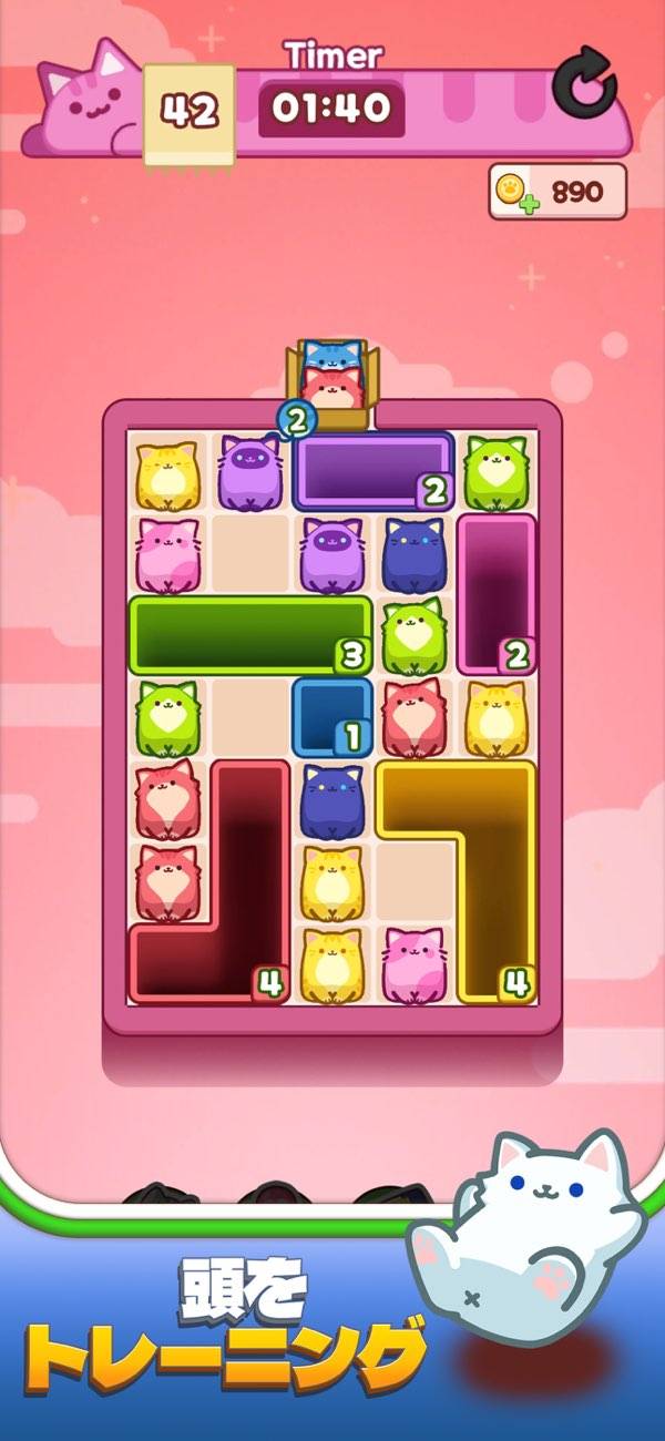 ネコに癒されリラックスしながら遊べるのに、気づいたら脳もちょっぴりスッキリしている、そんなゲームです。
