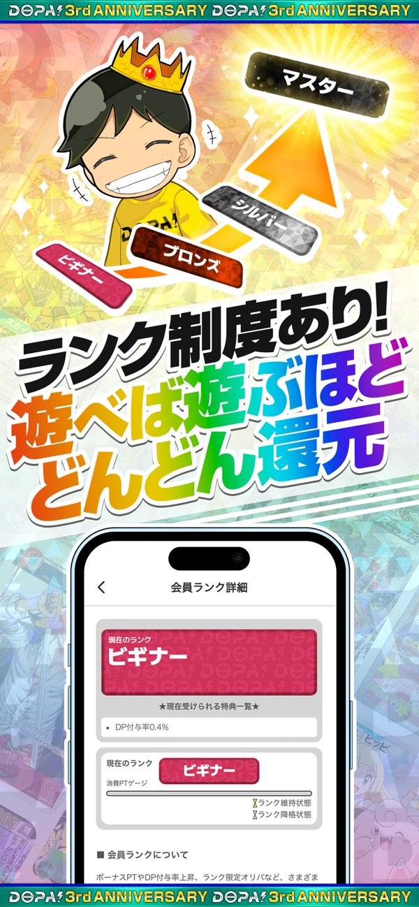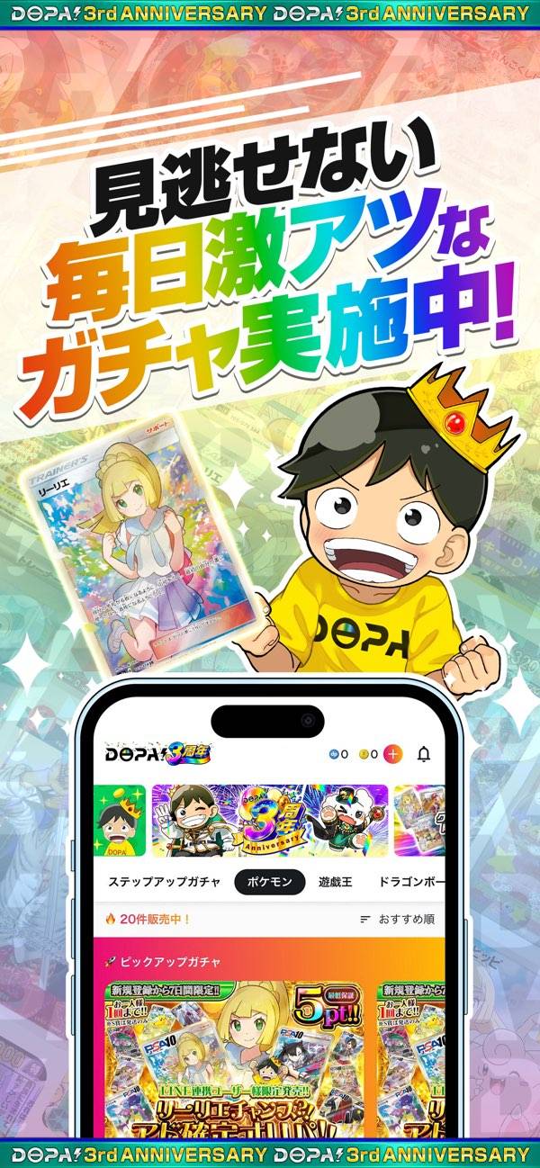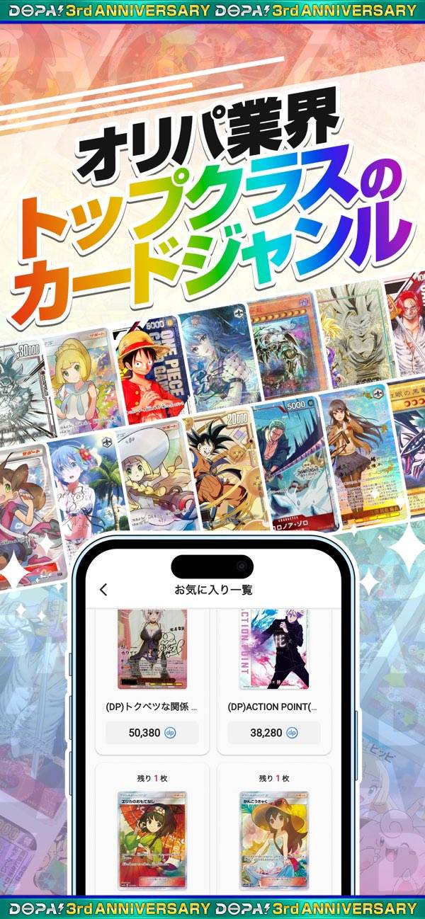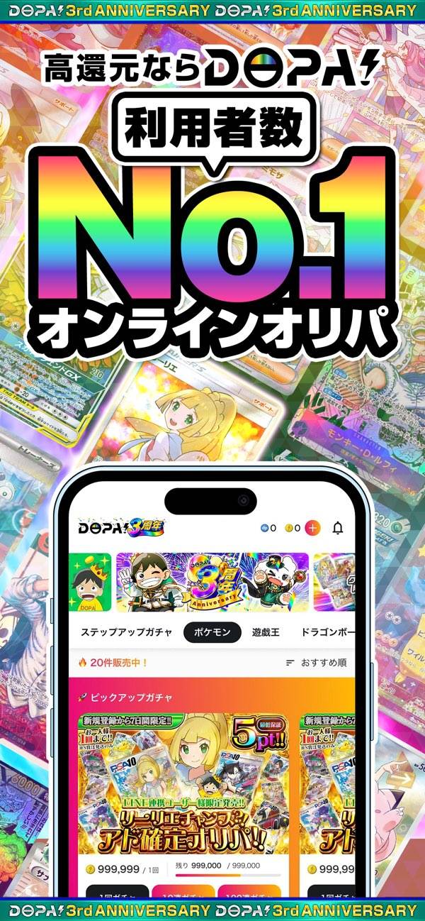 定期的に開催される「DOPA祭」では、カードの排出率がアップするイベントを楽しめます。また使い続けることで、ユーザーランクが上がり、上位ランク専用の特別なオリパにも挑戦可能。運試しから本気の収集まで、自分のペースで楽しめる工夫が詰まっています。