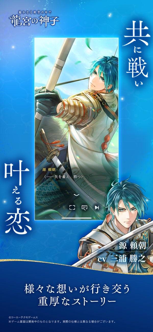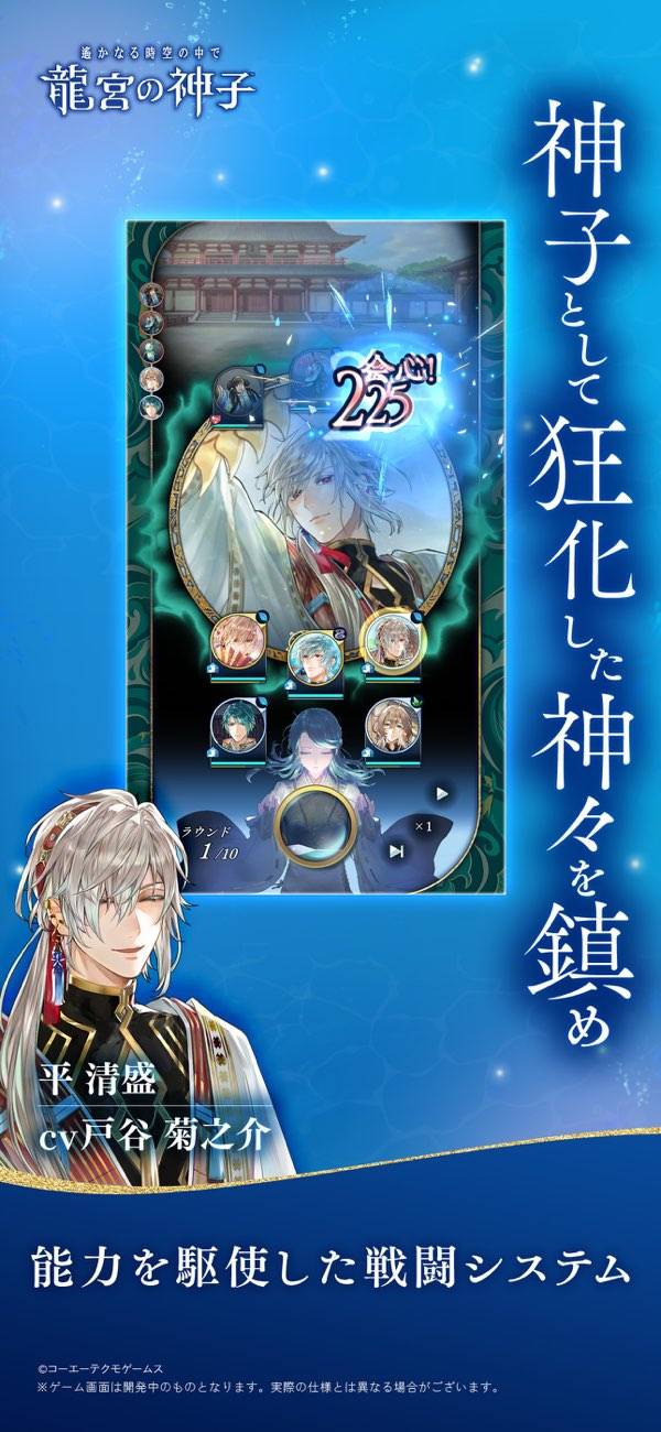 幻想的な水の都「龍宮」を拠点に、プレイヤーは神子となって平安や戦国、幕末などさまざまな歴史世界を巡り、英雄たちと共に危機に立ち向かいます。