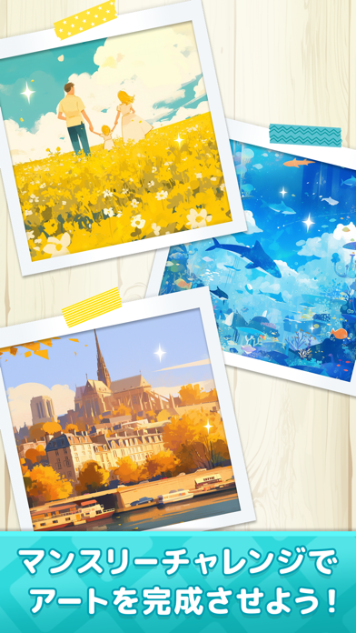 マンスリーチャレンジでは、パズルを解いて絵柄を完成させていく楽しみがあります。どんどん出来上がっていくアートを眺めるのも気持ちがいいもの。
