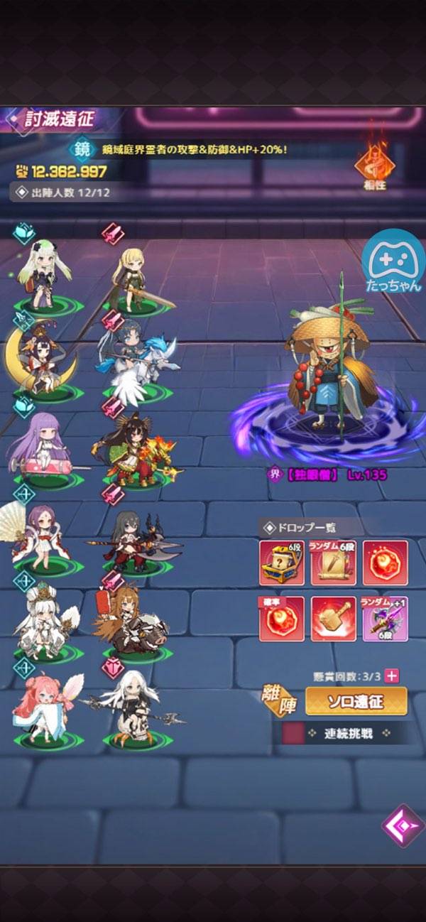 戦闘はフルオートになっており、プレイヤーが何かアクションを起こす必要はありません。その代わり、育成や編成など事前の準備が重要になってきます。