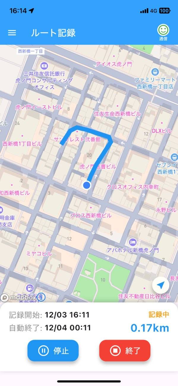 - ボタンを押すだけでルート記録スタート。あとで見返せてモチベアップにもつながる
