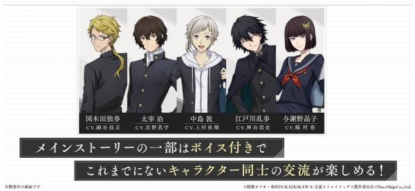 『文豪ストレイドッグス』を原作とした、學園物語と能力バトルが織り成すスマホゲーム。私立櫻眞學園で出会った学生・教師たちと共に、鏡の向こう側に広がる世界「ヰ界」を探索していきます。
