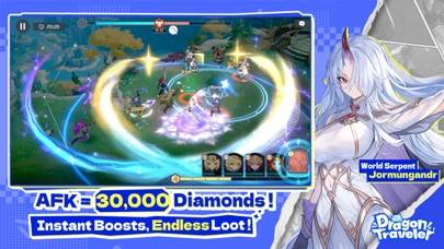 放置報酬で育成が進む、ステージ制のセミオートRPGです。伝説の悪竜「ファフニール」として冒険に出て、多彩な仲間たちとともにバトルを突破していきます。