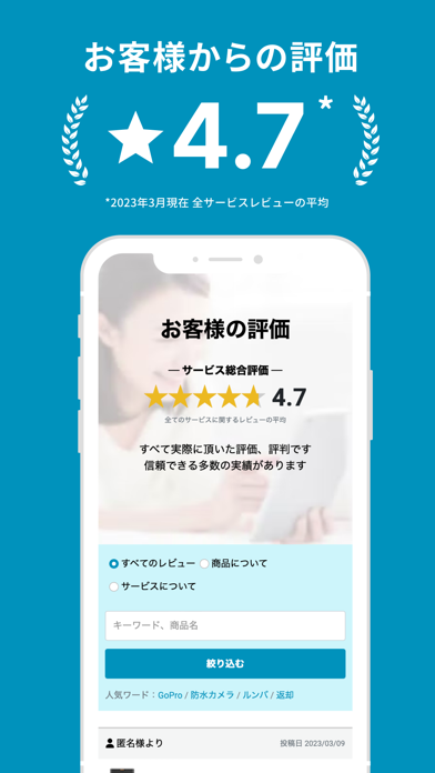 製品の性能や大きさなど、リアルな意見が飛び交う口コミ機能が便利。チェックしておけば製品を借りる前にサイズ感や注意すべき点がわかり、届いてからイメージとのギャップを感じにくいでしょう。