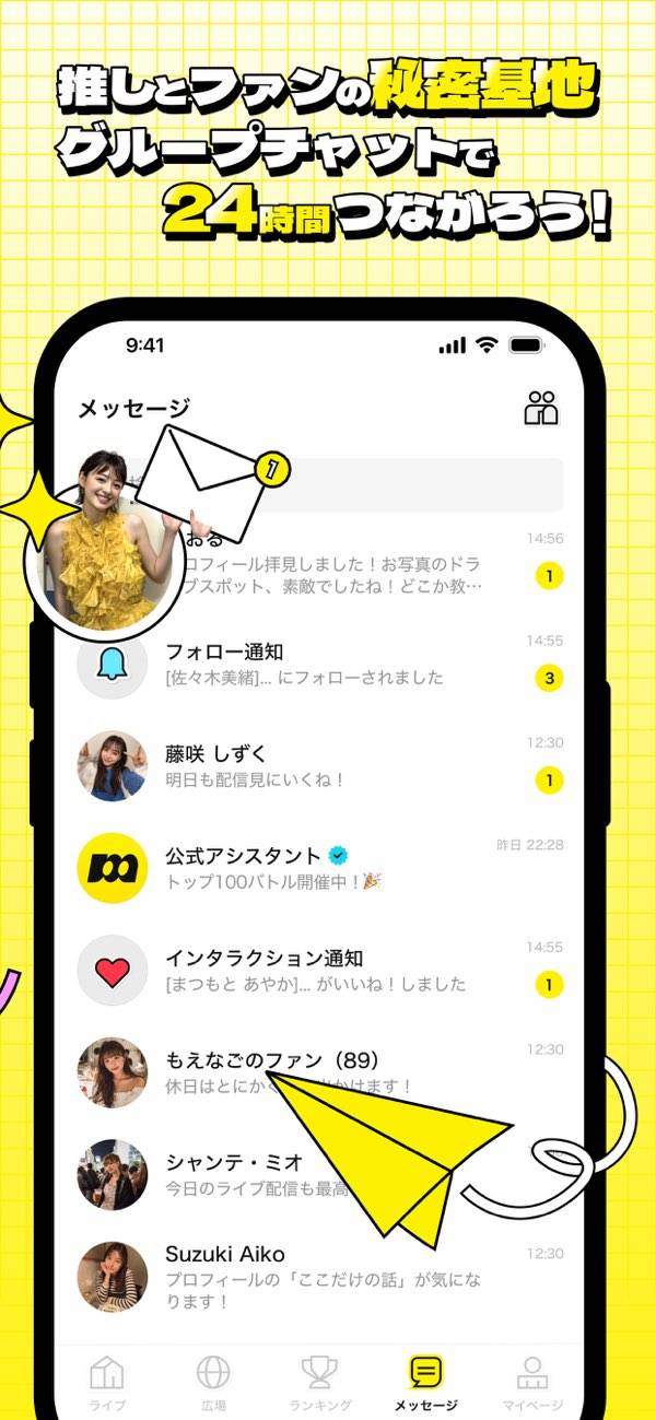 4K対応の超高画質の配信が特徴のライブ配信アプリです。ファンクラブに入ると、ライバーと直接コミュニケーションできるグループチャットが開放。ほかのファンと会話もでき、推し活仲間が増やせます。