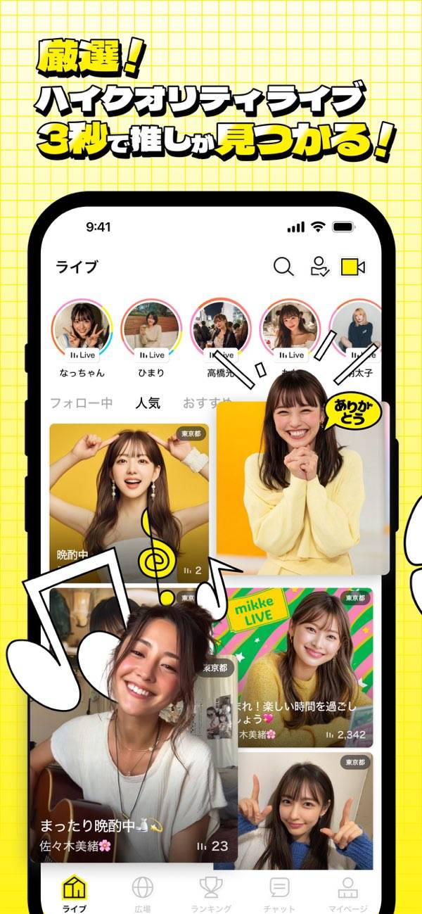顔出し中心のライブ配信アプリって感じで女の子たくさんいる。