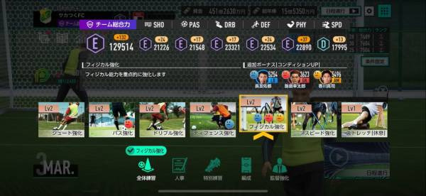 基本は試合で資金を稼ぎ、その資金でクラブを強くして次の勝利につなげます。この繰り返しでクラブを強化しながら、1シーズンを走りきるのが主な流れです。
