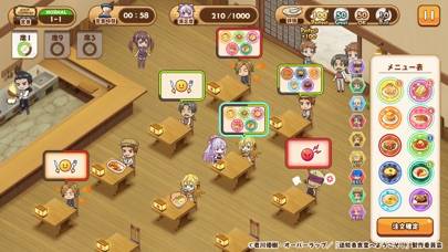 アニメの食堂世界で注文をさばいていく、ステージ制のカジュアルゲームです。注文に合う料理を選んで素早く出して、お客さんの満足度を上げてステージクリアを目指します。