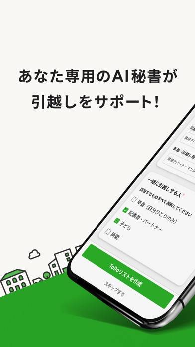 期限付きのToDo管理で、引越し準備が手早く進められるアプリ。引越し先の住所など、いくつかの質問に答えるだけで状況に合ったToDoが自動で並びます。急な転勤、引越しで時間がないとき、次に何をすればいいか見えるので荷物整理や見積もり計算がテンポよく片付きます。
