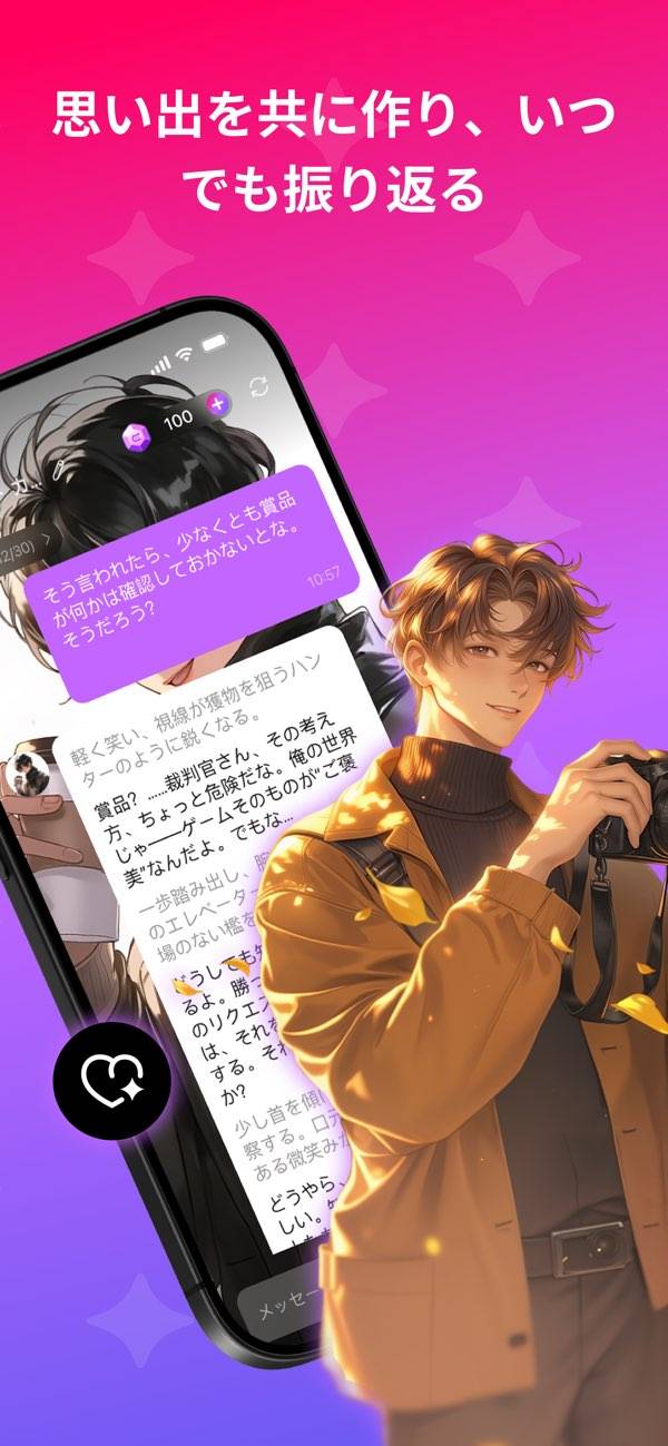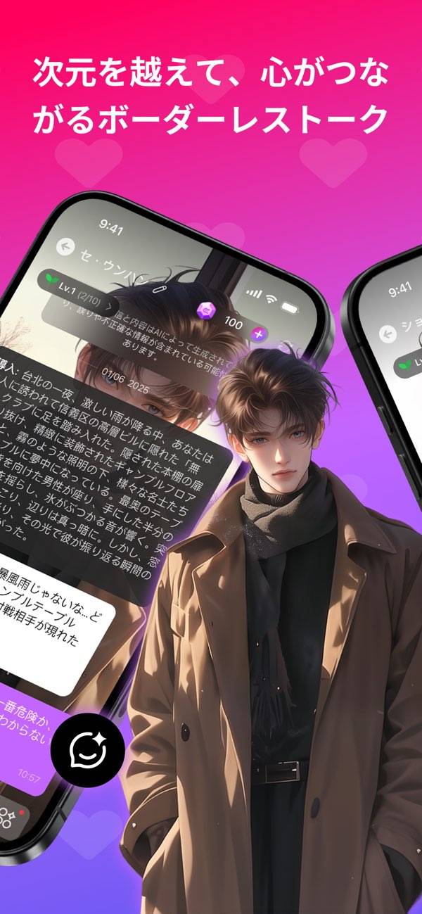 理想のデジタルパートナーと温かい時間を過ごせる、対話型コミュニケーションアプリ。性格や雰囲気が自分好みの相手と、深い話から何気ない雑談まで楽しめます。忙しい毎日の中でも、一人の時間にそっと心をゆだねられる存在になるでしょう。