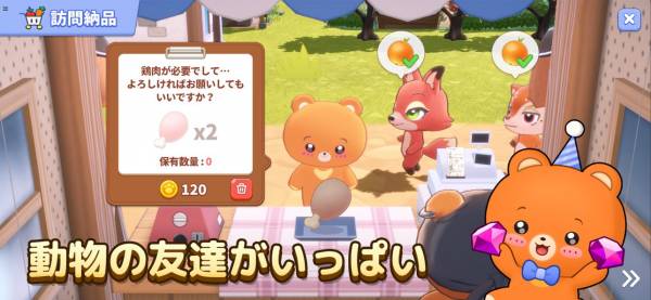 クマの森で自分だけの農園を育てていくカジュアルゲームです。種まき→収穫→パンづくりのような流れに加えて、動物のお友達から届く注文をこなす楽しさも。