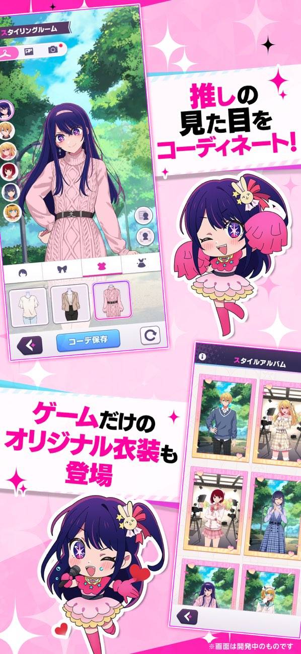 - 衣装や髪型のコーデで、推しを自分好みに仕上げられる