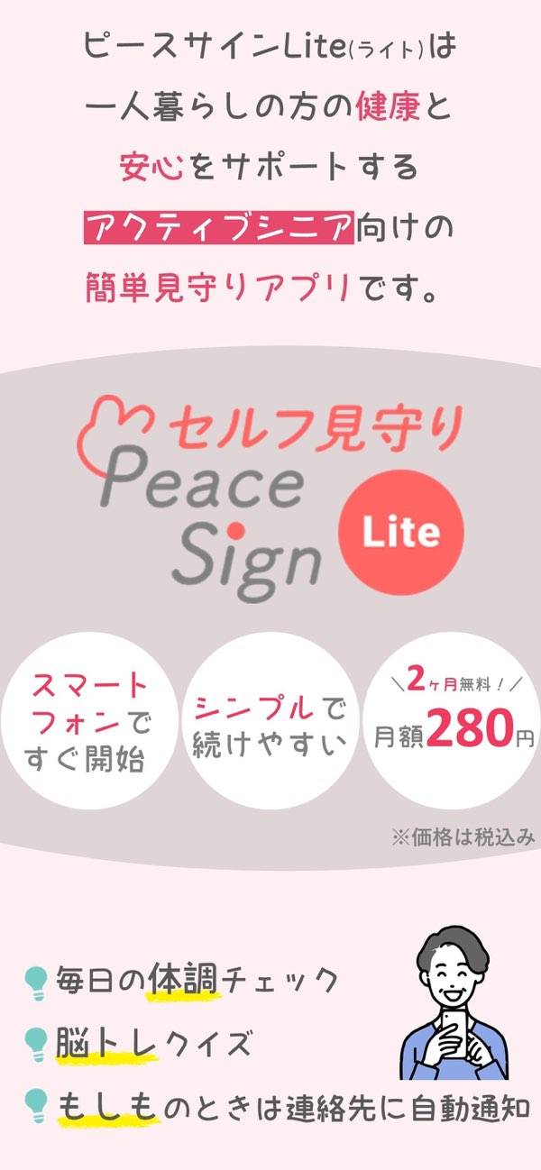 毎日の体調チェックがとても手軽でした。決まった時間に通知が届き、「元気です!」か「あまりよくないです」のどちらかをタップするだけなので、忙しい日でも数秒で記録できます。入力がほとんどいらないため、続けることへの負担も少なく感じました。体調チェックの後に簡単な脳トレができるのも、ちょっとした気分転換になります。もし反応がない日が続いたときは、登録した連絡先に位置情報付きで通知が届く仕組みになっているので、一人暮らしでもさりげない見守りがある安心感がありました。
